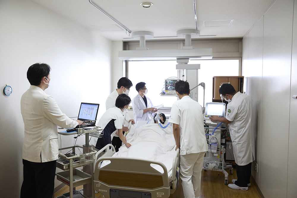 人工呼吸器を使用する患者さんへ安全に呼吸管理が行えるよう、臨床工学技士と協働し、週に1回のペースで 人工呼吸管理のラウンドを行います。