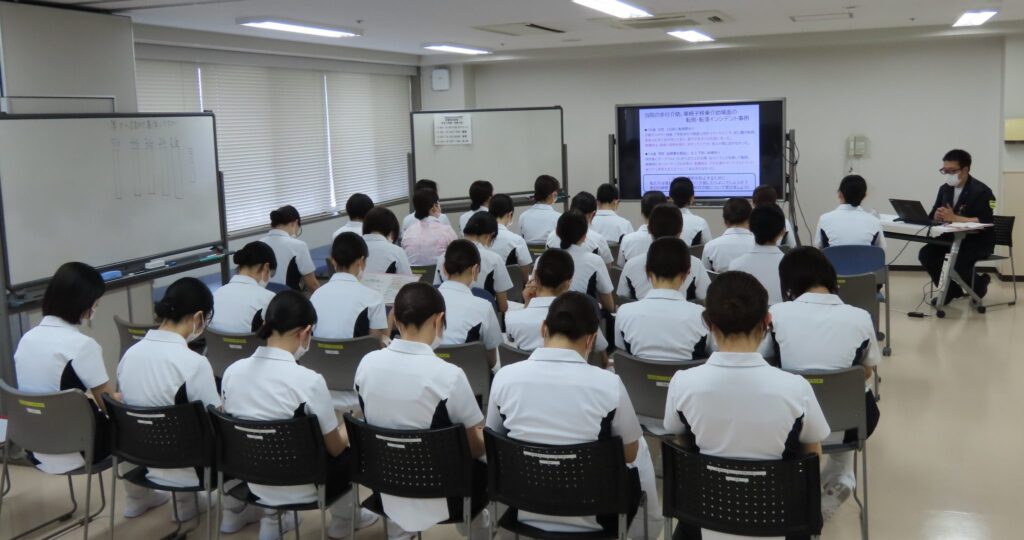 実際の活動にあたっては、各部署のリスクマネージャーと連携しながら、各部署で発生しているインシデント等についての情報収集、データ集計・分析を行い、必要な対策を講じています。これらを定期的な「インシデント情報」や院内研修会で職員にフィードバックして、安全に向けた行動に繋がるよう働きかけを行っています。